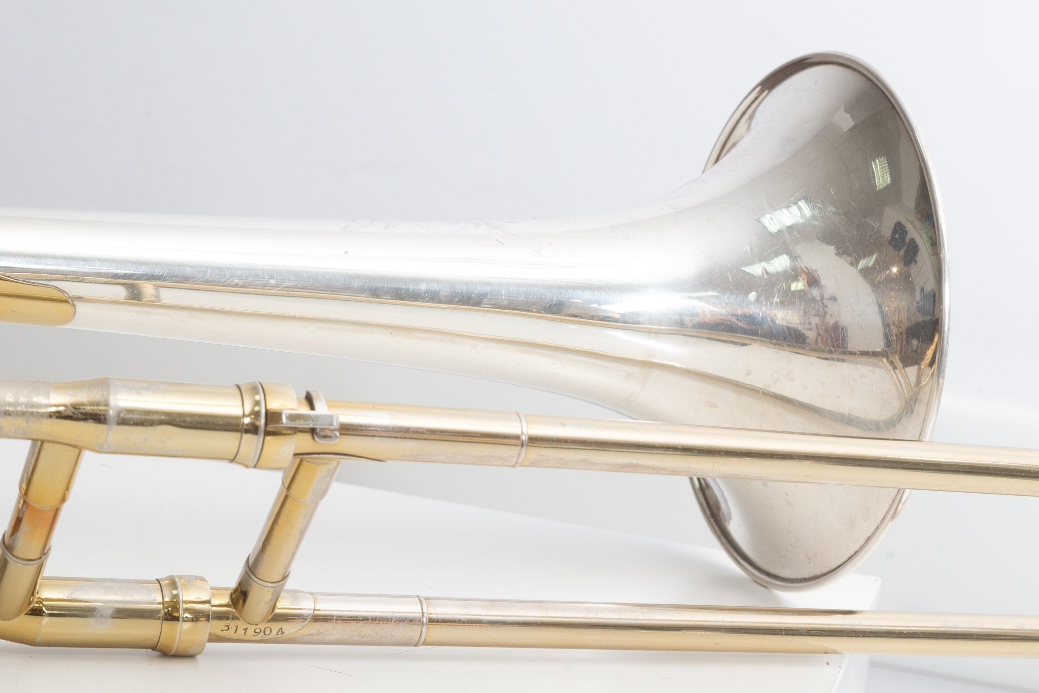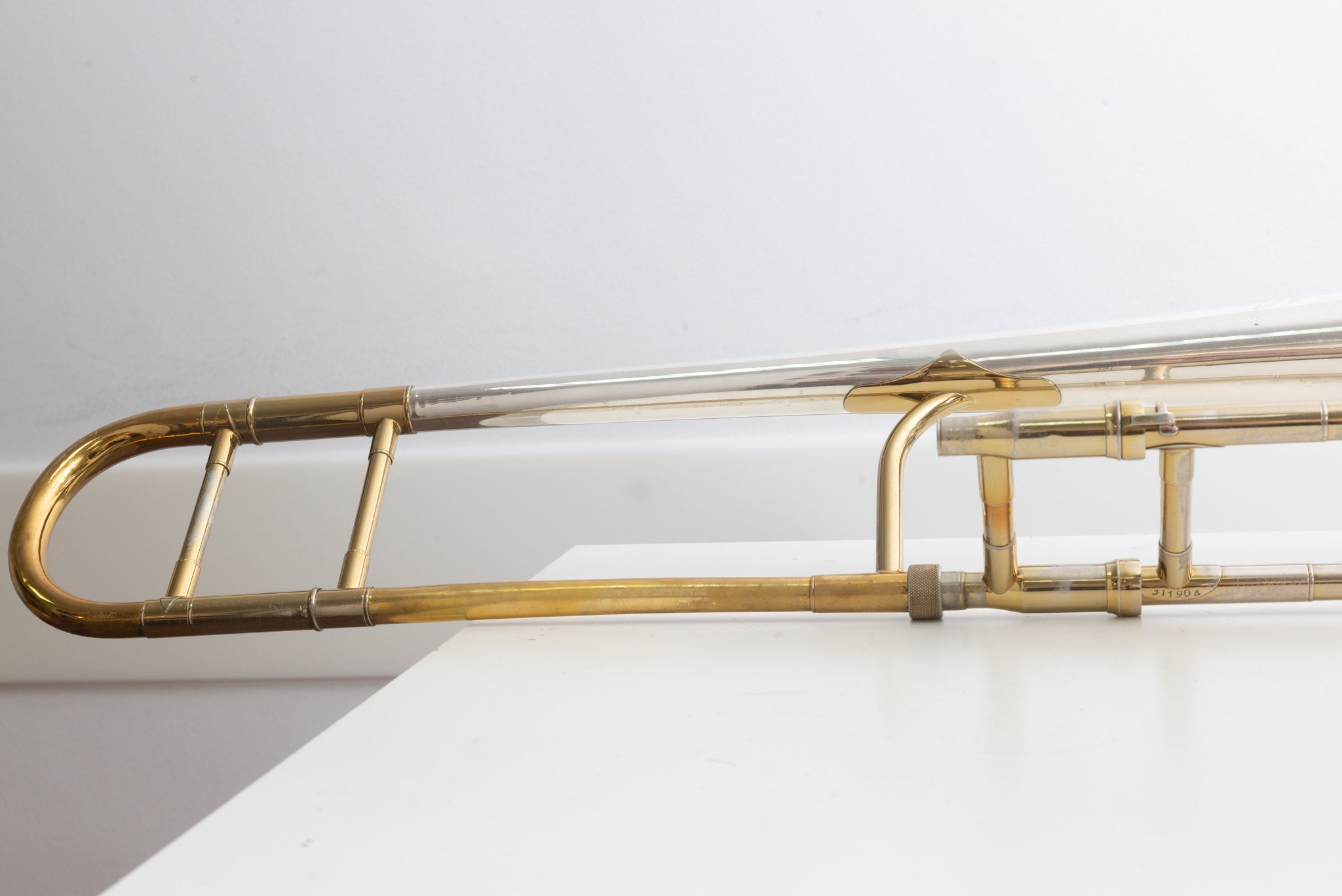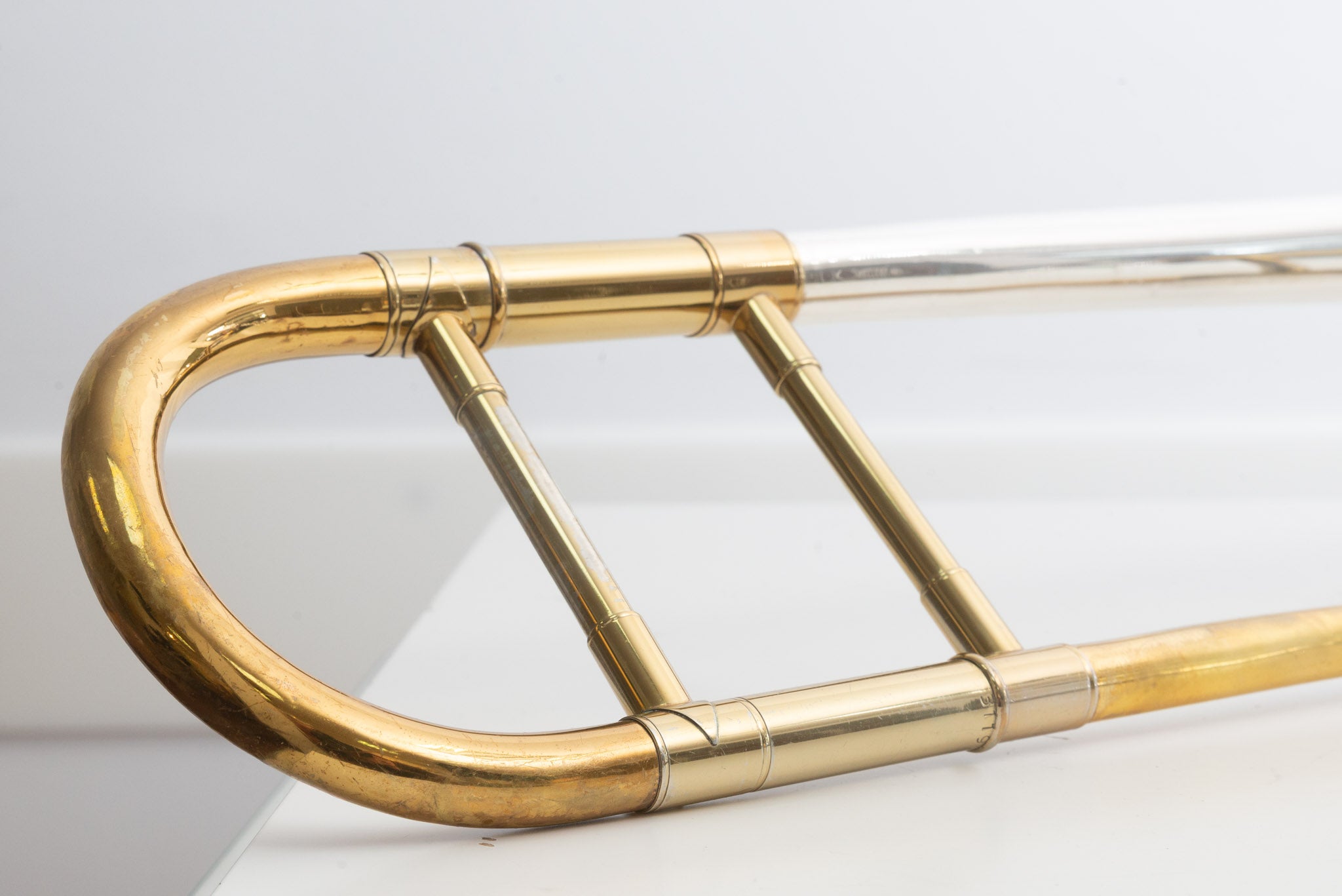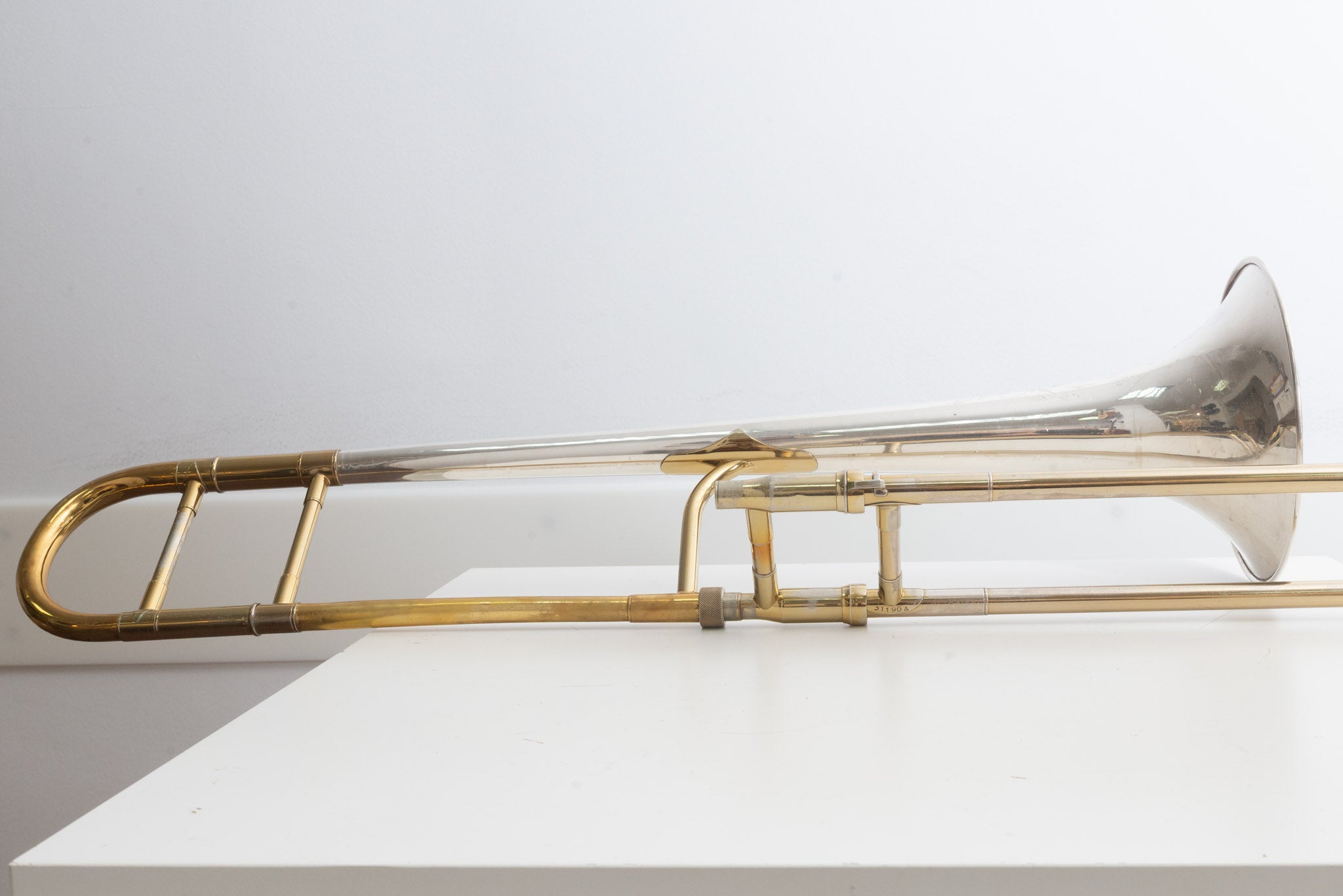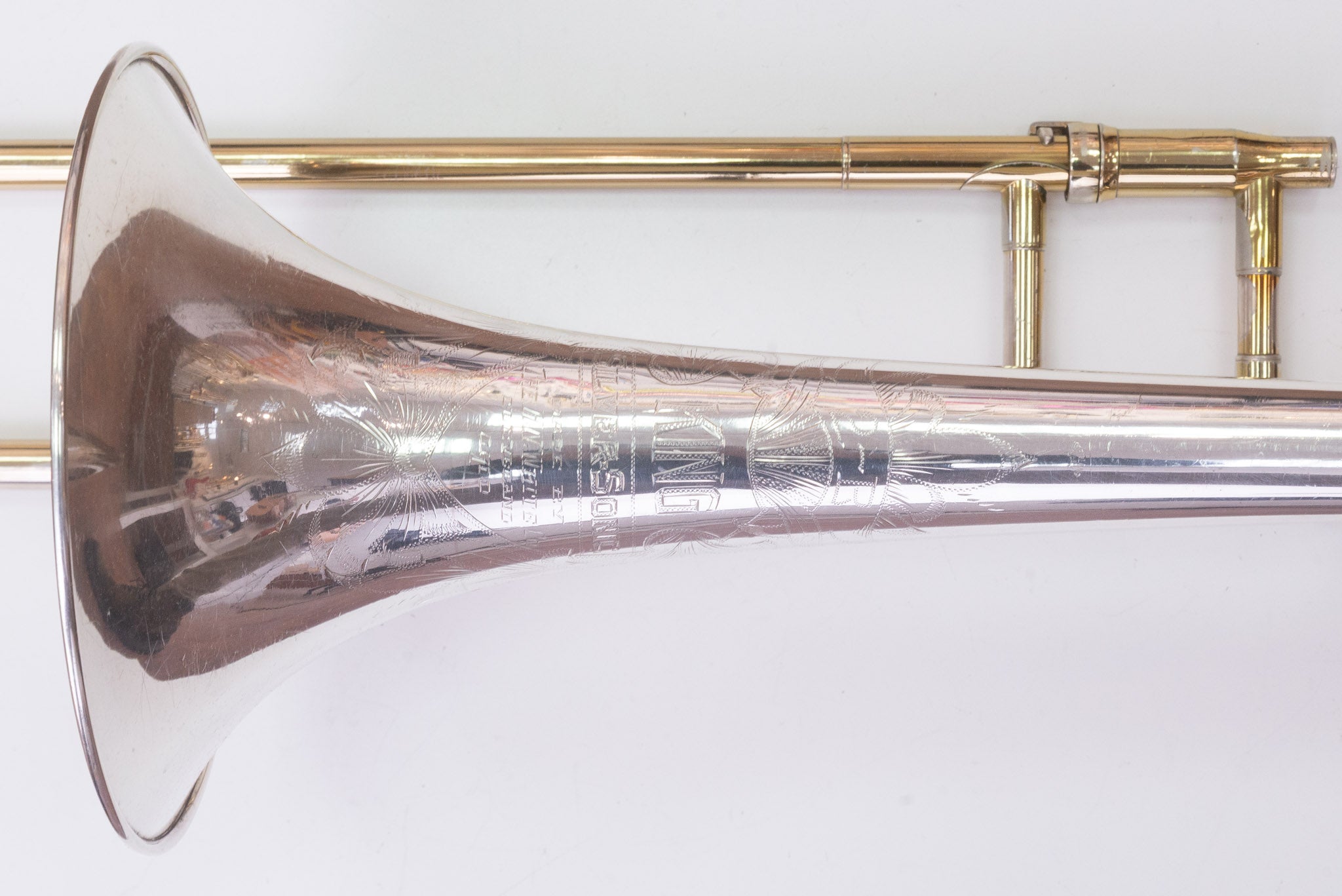 Diese King 2B Silversonic stammt aus dem beliebten H. N. White-Baujahr 1951 und gehört damit zu den besonders gefragten frühen Silversonic-Exemplaren. Das Instrument wird inklusive originalem Tweed-Koffer und originalem King-Gegengewicht geliefert. Der Gesamtzustand ist gut mit altersbedingten Gebrauchsspuren und Kratzern; technisch ist die Posaune voll spielbereit.