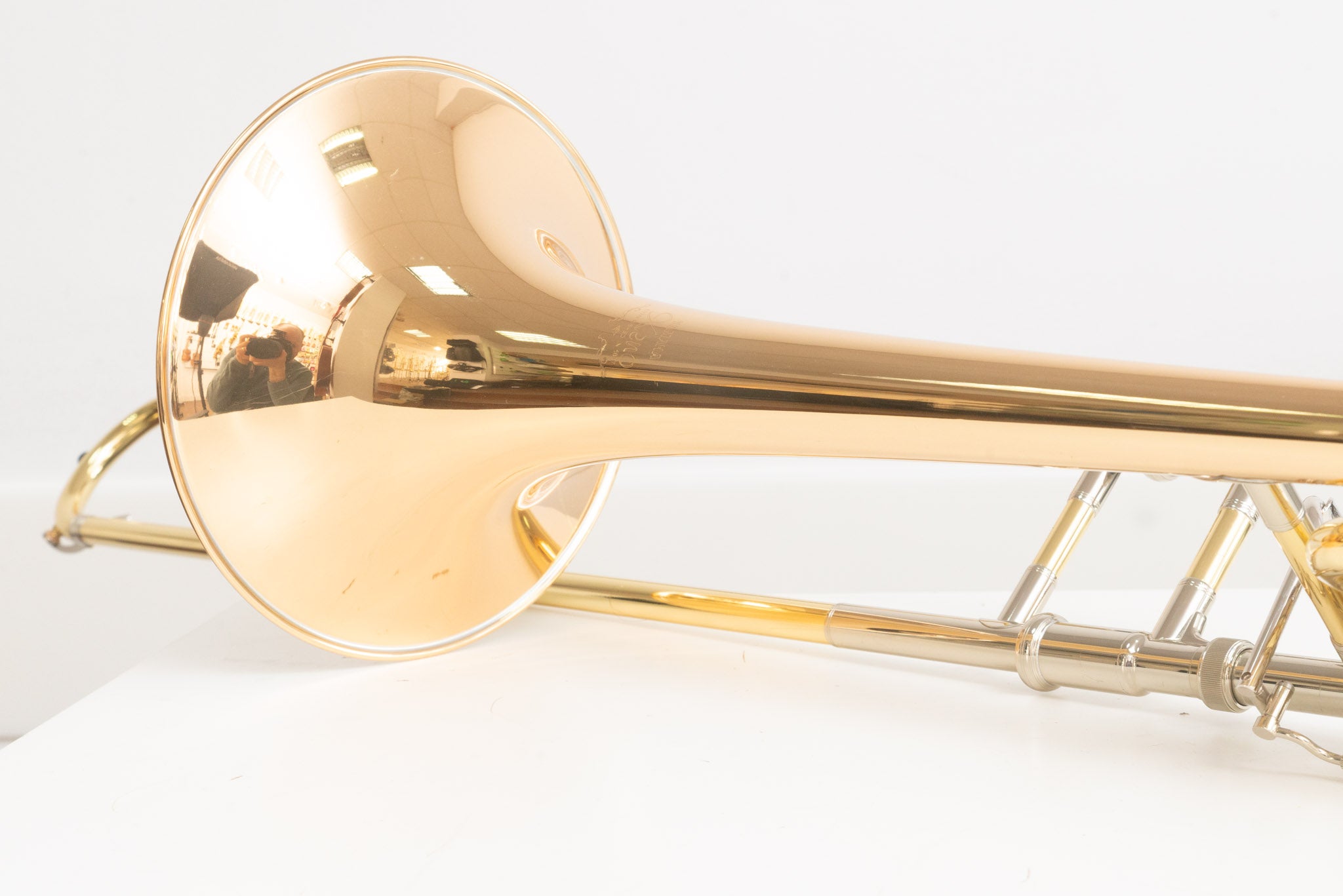 – Das bin ich, Felix Eilers, meines Zeichens professioneller Posaunist und Geschäftsführer. In der Werkstatt und im Verkauf arbeitet Instrumentenbauer Danilo Neun in unserem Geschäft in Mölln. Des Weiteren werden wir von unseren Partnerwerkstätten „Trompetentobi“ unterstützt.